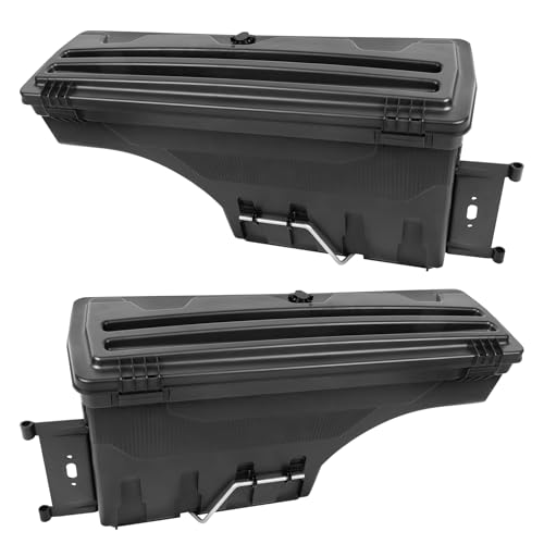 The UnderCover SwingCase Truck Bed Storage Box features a sleek, black design that blends seamlessly with the truck’s exterior. Its compact yet functional size makes it an excellent choice for organizing smaller tools and accessories without sacrificing bed space. The SwingCase mechanism is engineered for effortless side access, allowing users to quickly retrieve or store items without climbing into the truck bed.
